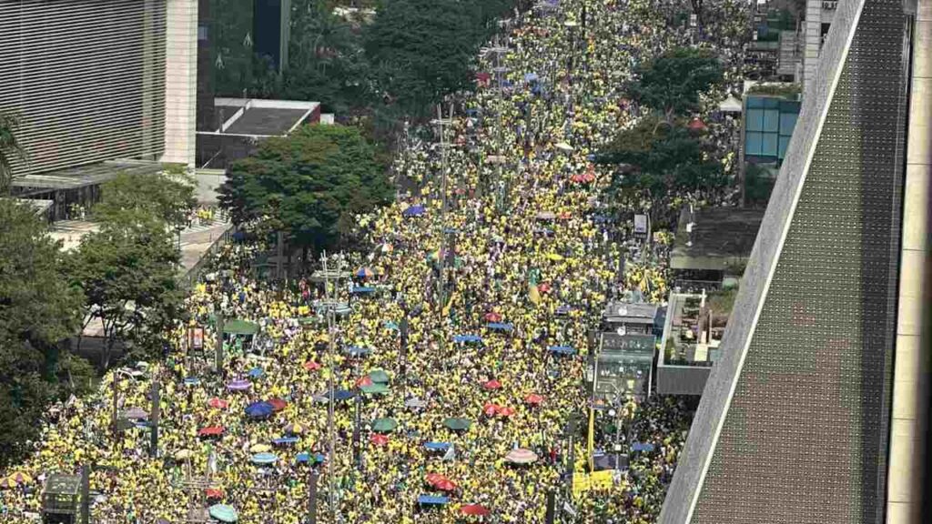 Apoiadores do ex-presidente Jair Bolsonaro se reuniram na tarde deste domingo (25) na Avenida Paulista, em São Paulo. Vestindo camisetas amarelas, portando bandeiras do Brasil e de Israel, eles chegaram ao encontro em ônibus com placas do interior de São Paulo e de outros estados.