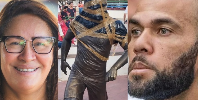Daniel Alves recebeu a homenagem, mas depois que foi preso teve o monumento vandalizado, coberto por fitas. “A Prefeitura de Juazeiro informa que até que o processo seja concluído, uma vez que o jogador anunciou que vai recorrer da decisão, não irá se posicionar”, diz o texto.