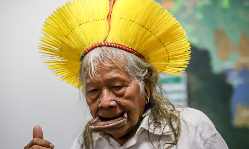 Raoni Metuktire, de 92 anos, dedica sua vida à defesa da Amazônia e dos povos da floresta e tem grande reconhecimento internacional. Da aldeia Kraimopry-yaka, onde nasceu, o cacique rodou o mundo pedindo paz e mantém interlocução com diversas personalidades, como o Papa Francisco e o rei britânico Charles III.