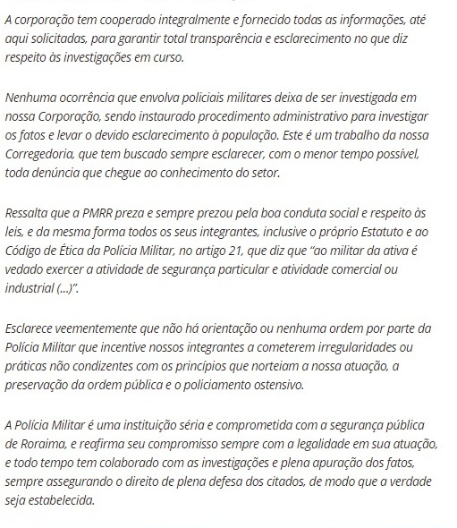 Leia mais: Milícia formada por policiais militares de Roraima opera sob ordens de Denarium